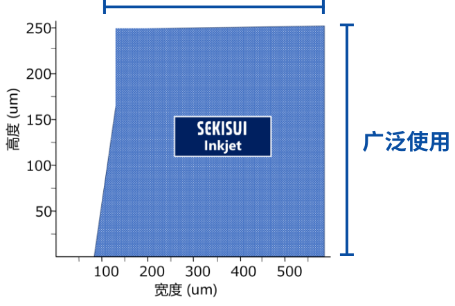 積水化學(xué)的噴墨因具有高粘度,所以著墨后難以潤(rùn)濕擴(kuò)散,可實(shí)現(xiàn)高分辨率圖案的打印。
