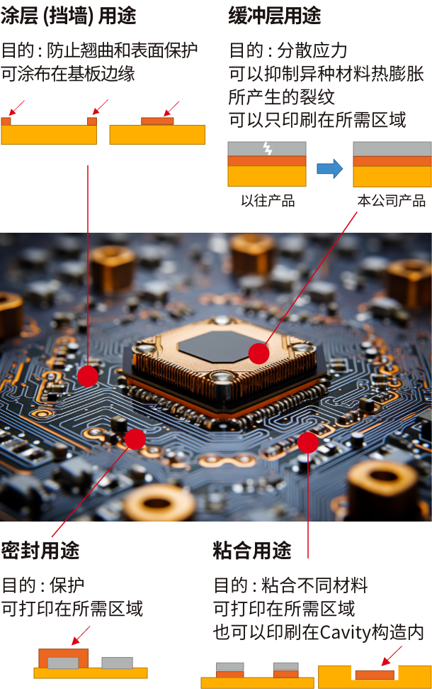 通過(guò)工藝改善/不需要顯影液/無(wú)溶劑,有助于提高生產(chǎn)效率、降低環(huán)境負(fù)荷