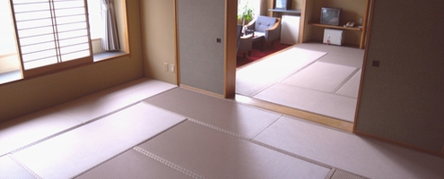 別館的日式房間里采用了MIGUSA的榻榻米,您可以在榻榻米上舒緩疲憊的身體。