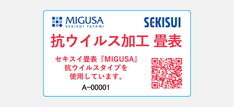 本標(biāo)簽用于證明這是經(jīng)過防病毒加工的榻榻米。我們準備了這個標(biāo)簽,是為了讓客人能夠更加安心地使用MIGUSA。