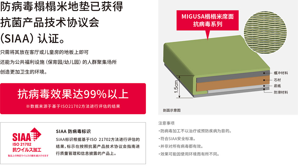 榻榻米 席面[MIGUSA]:聚丙烯、碳酸鈣 經(jīng)線 :棉?酯混紡線