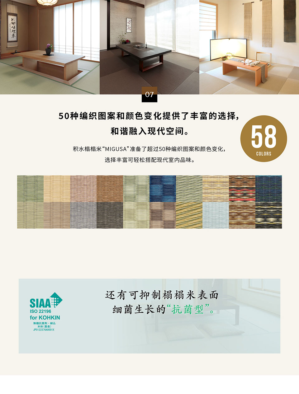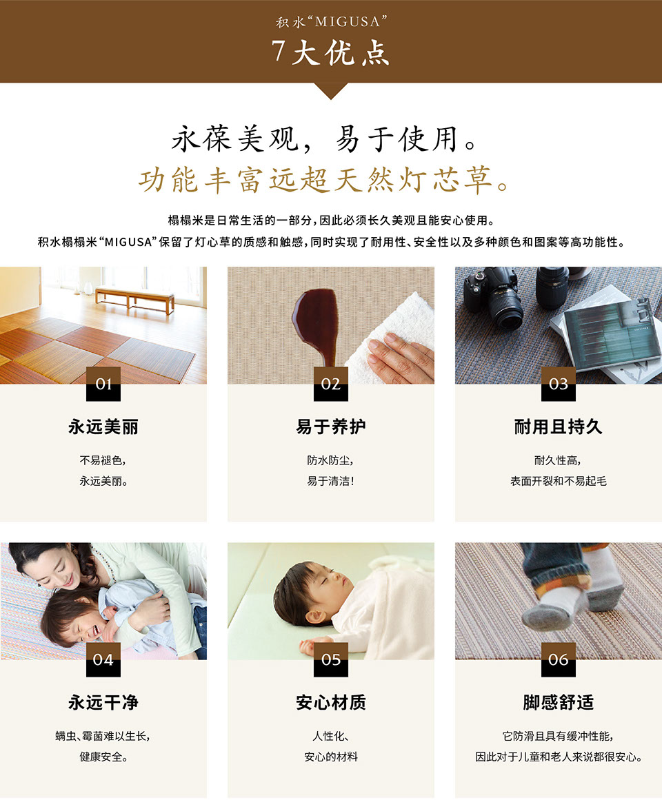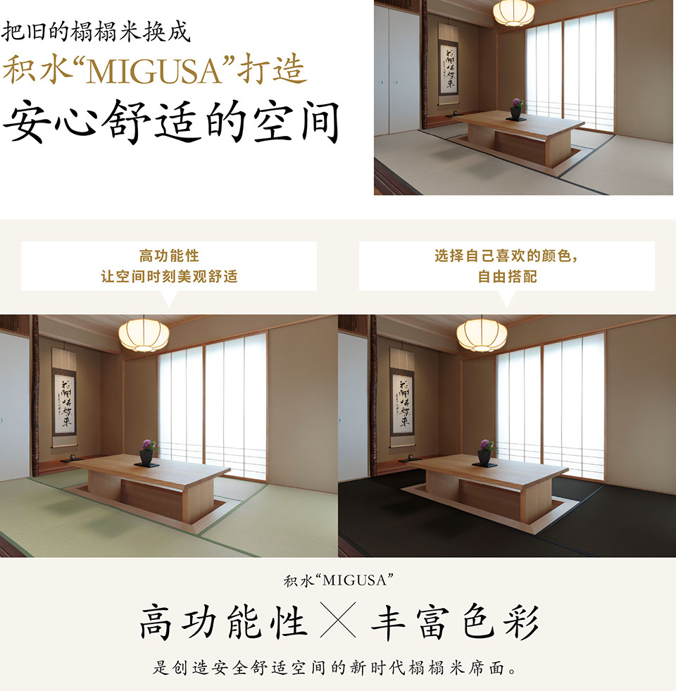 積水榻榻米 MIGUSA“楽座”是積水成型工業(yè)開發(fā)的放置式榻榻米。這款產(chǎn)品非常耐用,無需擔(dān)心螨蟲和霉菌,有多種顏色可供選擇。如需購買,請選擇我們的網(wǎng)上商店或授權(quán)零售商。
